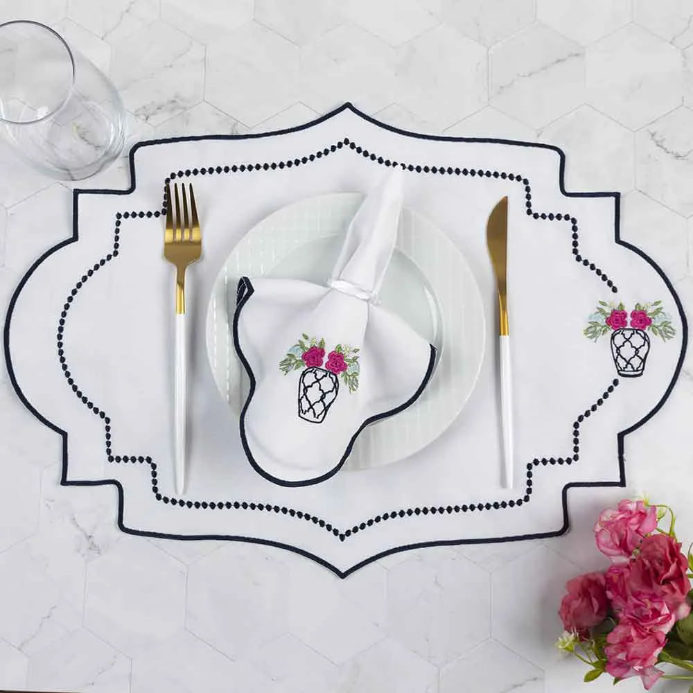 Kit 12 Jogos Americanos Guardanapos De Mesa Retangular Bordado Joaquina - Branco