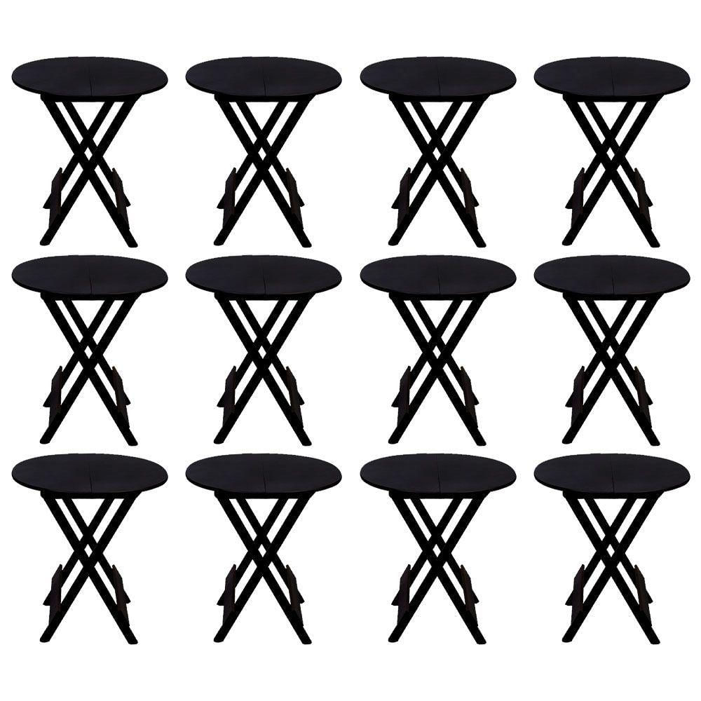 Kit 12 Mesas Redondas Dobráveis Em Madeira Maciça 70X70 Preto Ideal Para Bares E Restaurantes