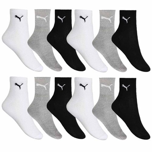 Kit 12 Pares de Meia Puma Esportiva Cano Médio Masculino - Mescla 39-43 / Preto e Branco