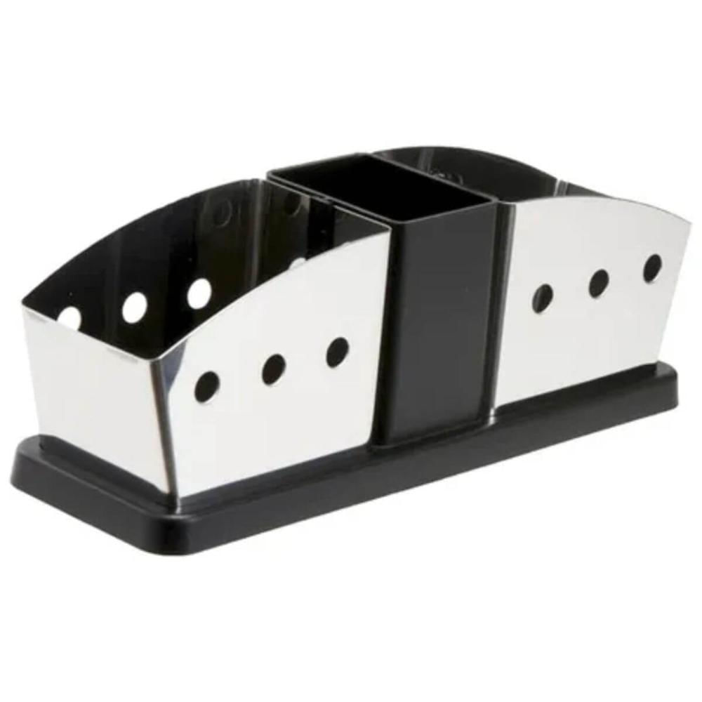Garantia: 90 dias / Peso total: 3,408kg / Cor: preto / Ref: 7794464685592; Dimensões de cada: 20,5cm (C) x 6,5cm (L) x 7cm (A); Comporta: sachês de açúcar, chá e adoçantes e colherinhas; Conteúdo: 12 porta sachês em aço inox.