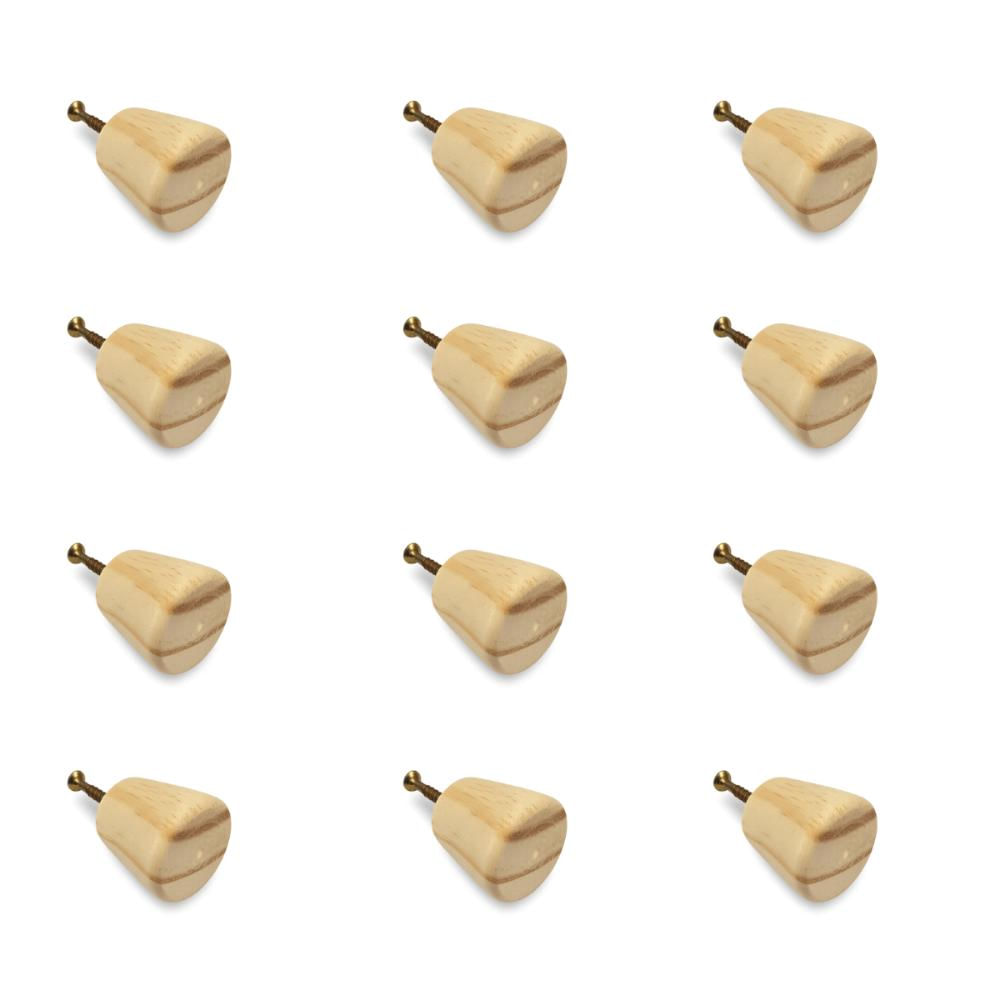 Kit 12 Puxadores de Madeira Redondos Para Móveis Gavetas Armários Modelo Cone