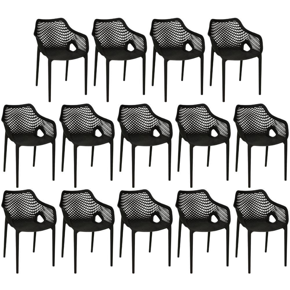Kit 14 Cadeiras De Jantar Design Suits Com Braços Empilhável Em Polipropileno - Preto