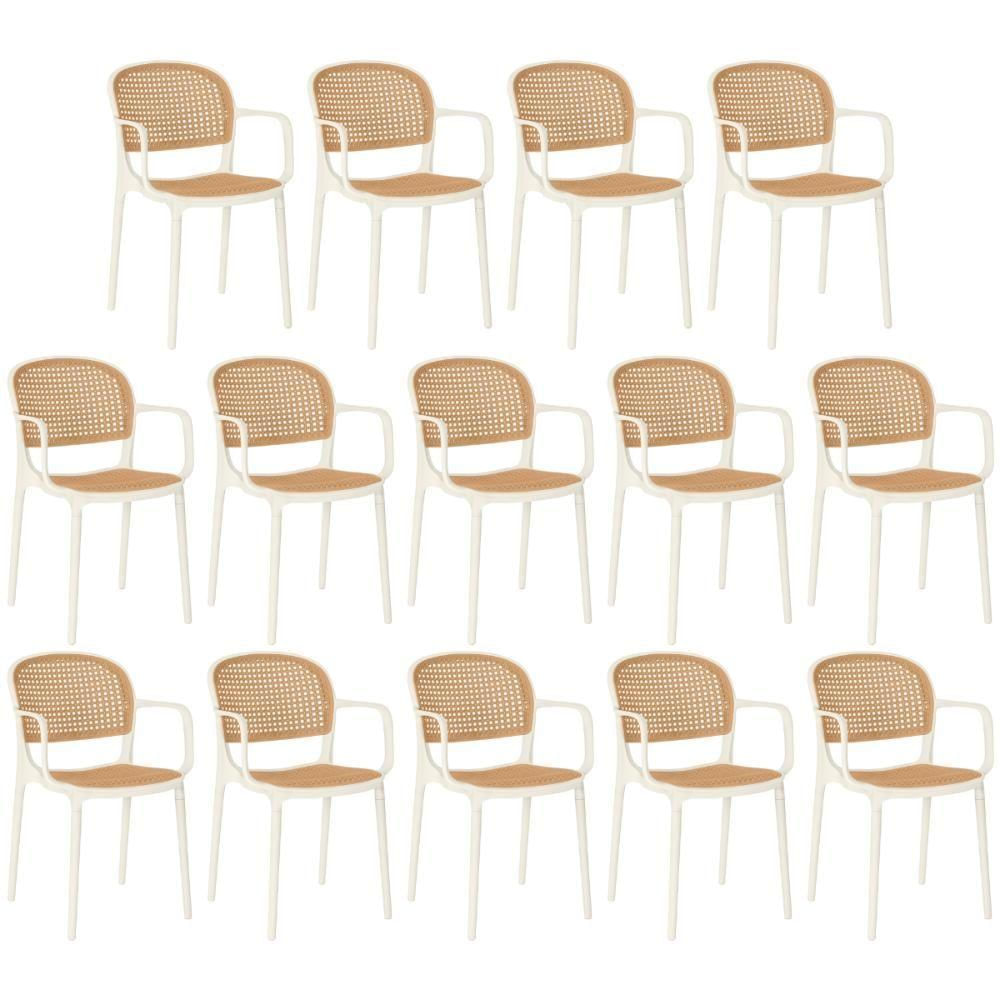 Kit 14 Cadeiras De Jantar Roma Prática Com Braços Para Sala E Cozinha - Bege