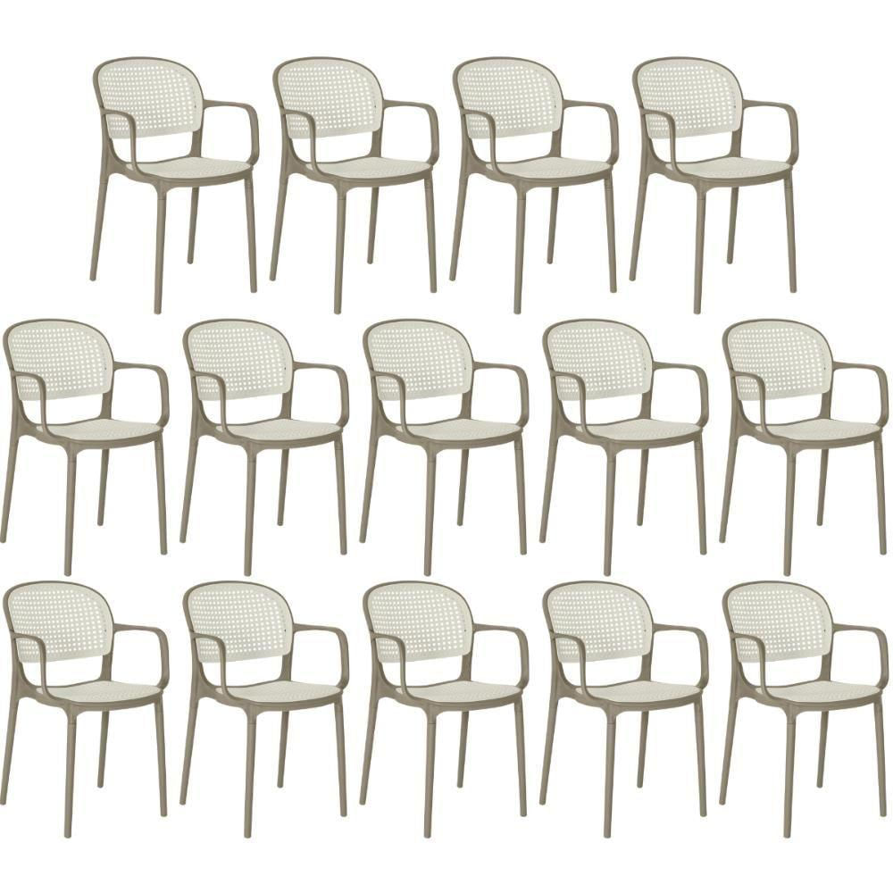Kit 14 Cadeiras De Jantar Roma Prática Com Braços Para Sala E Cozinha - Branco/cinza Escuro