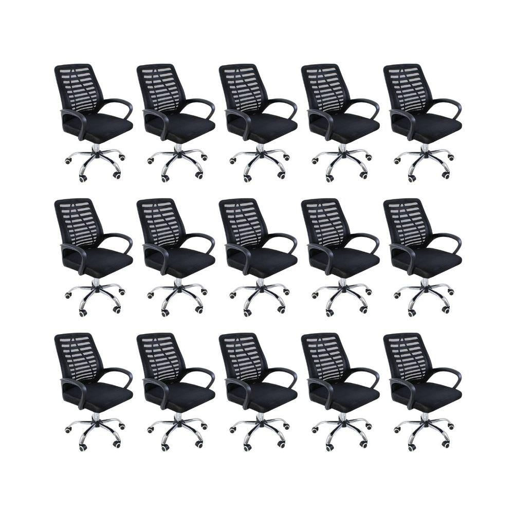 Kit 15 Cadeiras De Escritório Esteirinha Mesh Ergonômica Giratória Preto