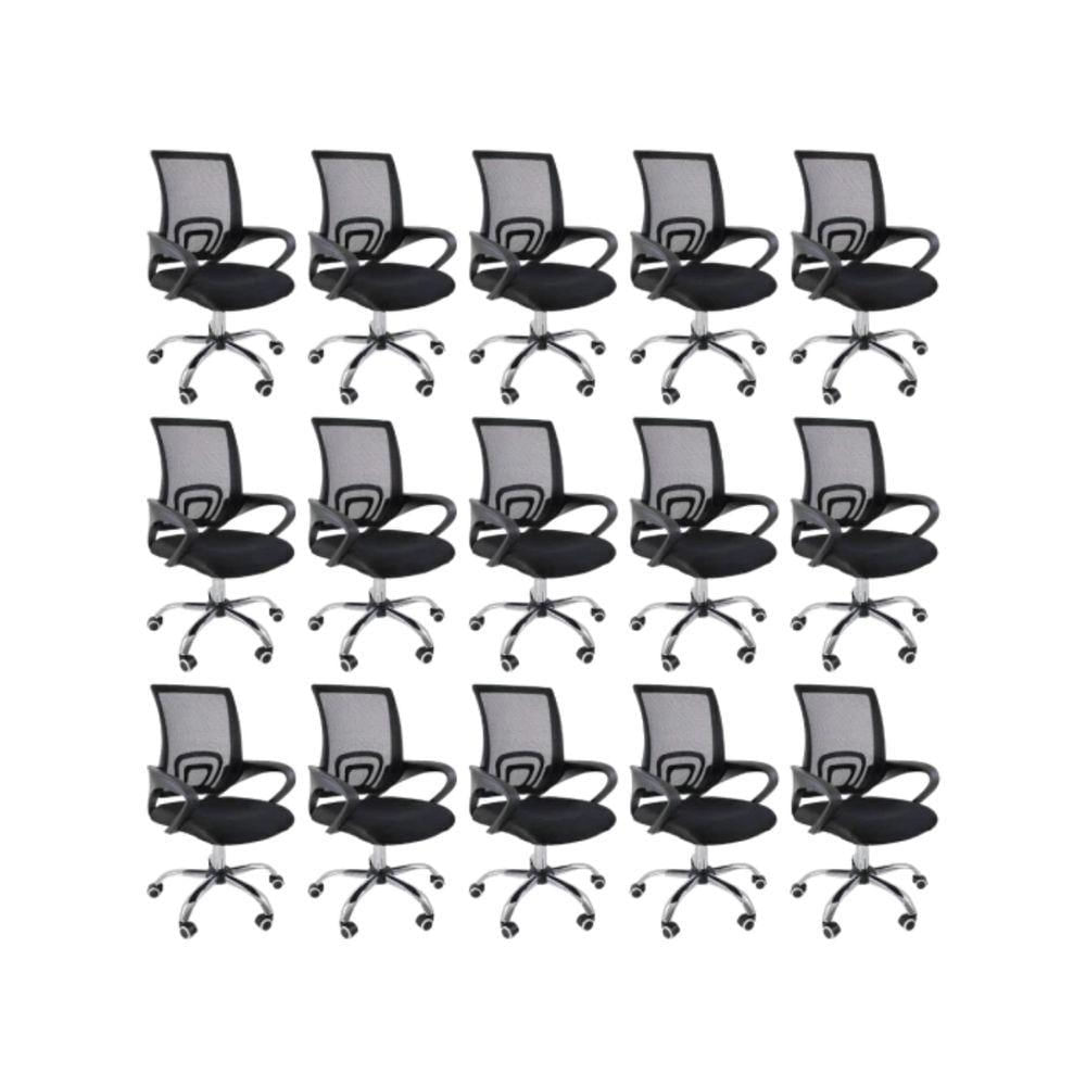 Kit 15 Cadeiras De Escritório Oficial Begonia Tela Mesh Ergonômica Preto