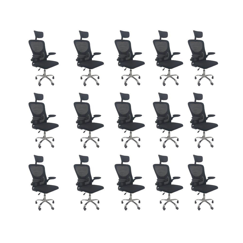Kit 15 Cadeiras De Escritório Oficial Vegas Apoio Preto