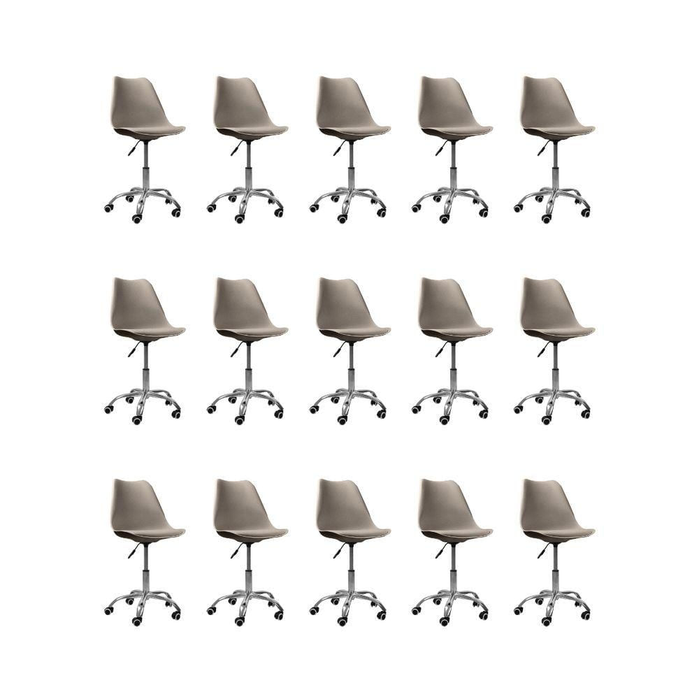 Kit 15 Cadeiras Office Base Cromada Com Rodízio Giratória Saarinen Bege