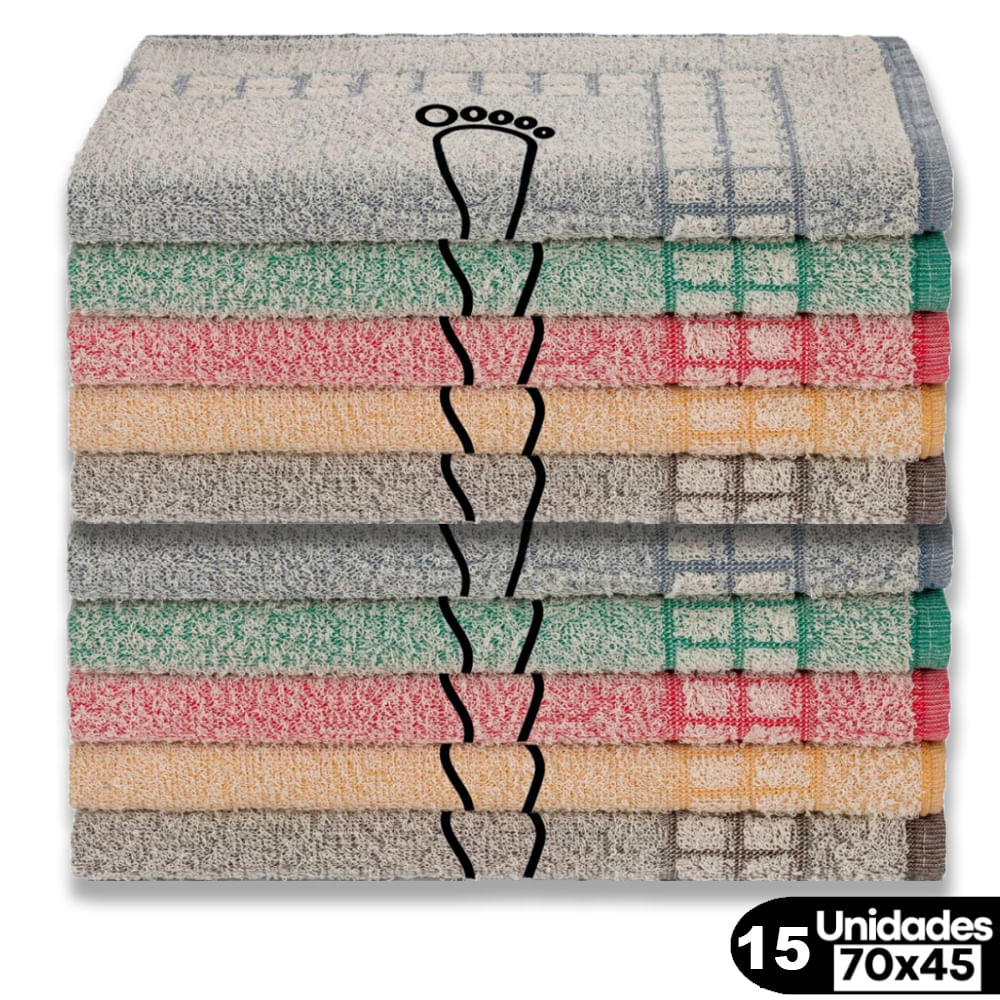 Kit 15 Toalhas de Piso Atoalhado Estampa Pézinho 45x70 Beka