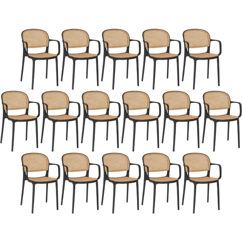 Kit 16 Cadeiras De Jantar Roma Prática Com Braços Para Sala E Cozinha - Preto
