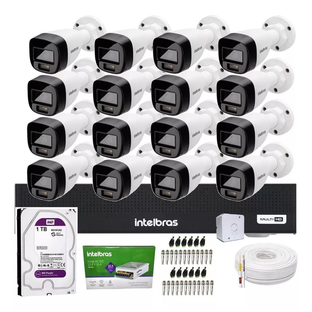 Kit 16 Cameras Intelbras 3220 Full Color Com Microfone, Dvr 16ch Mhdx 1116c, 1tb Purple