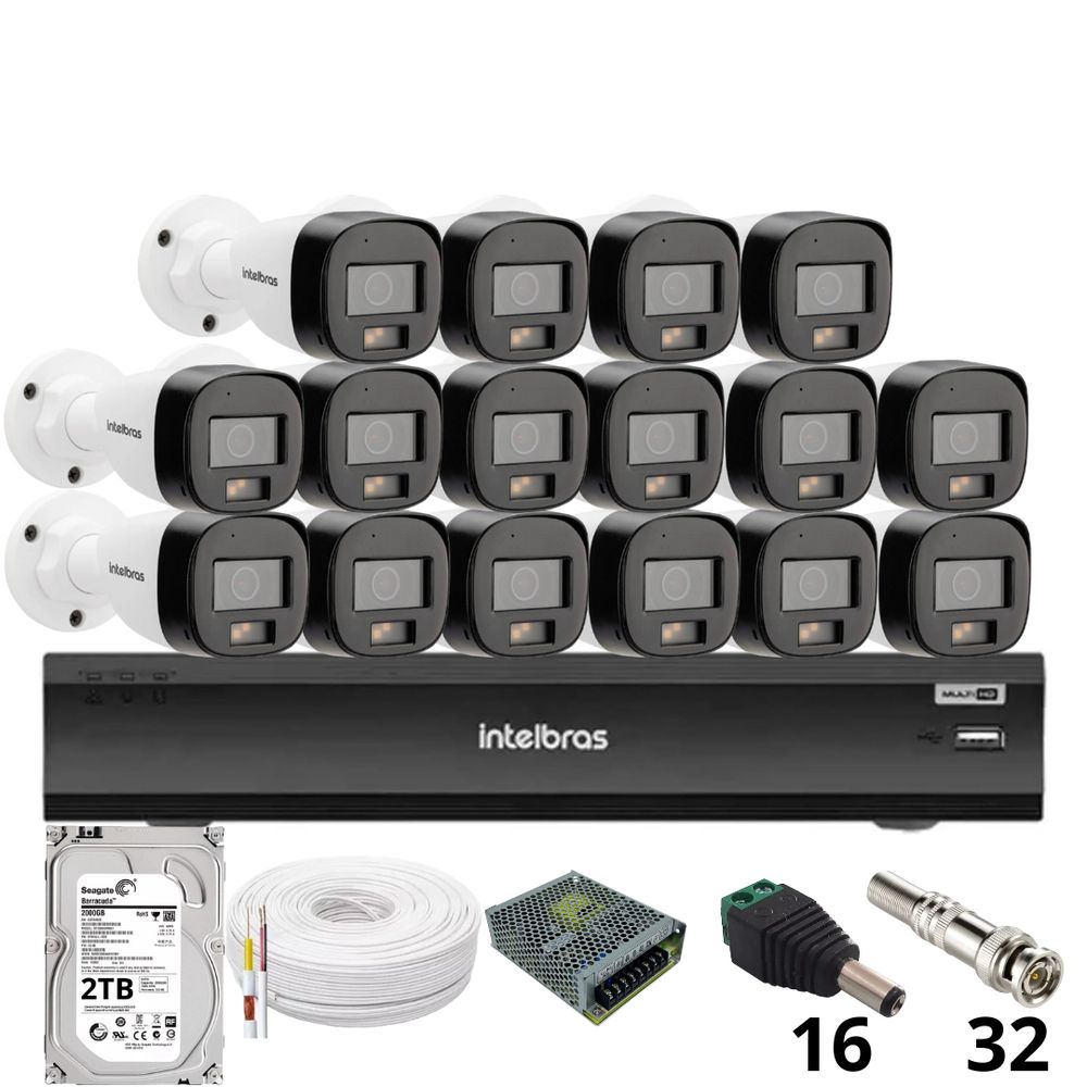 Kit 16 Câmeras Intelbras 3220b Full Color Com Áudio Dvr Intelbras Imhdx 3132 Inteligência Artificial Hd 2tb