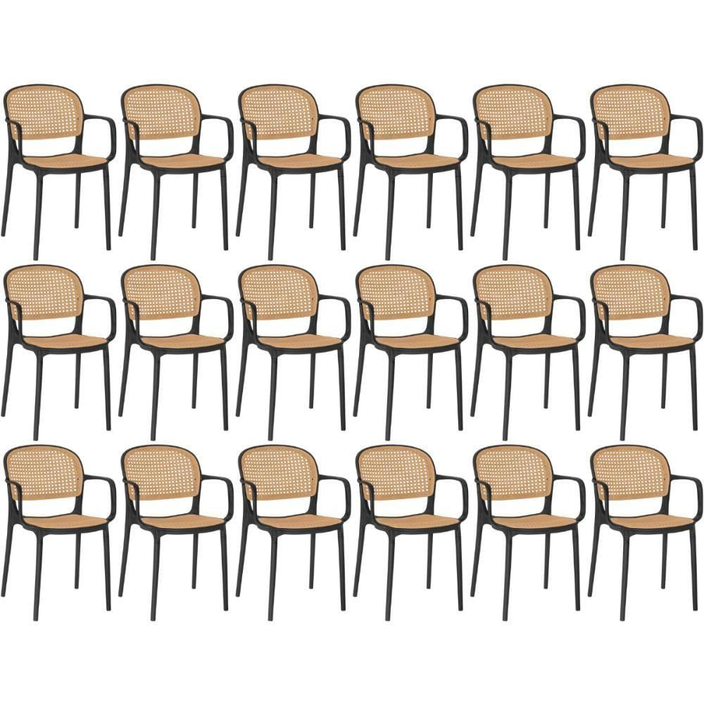 Kit 18 Cadeiras De Jantar Roma Prática Com Braços Para Sala E Cozinha - Preto
