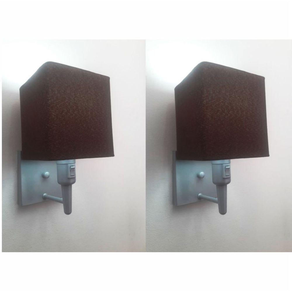 Kit-2 Arandela Quadrada Md-2019 Cinza C- Inter Liga E Desl Cúpula Em Tecido Café - Bivolt