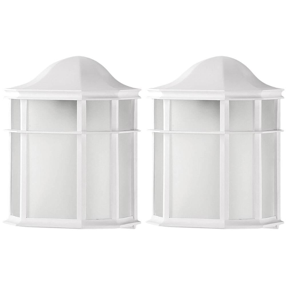 Kit 2 Arandelas Luminárias de Parede Jardim Branca Colonial 19x25cm Polipropileno Lente Fosca Dital