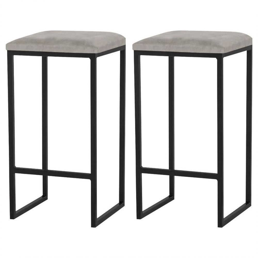 Kit 2 Banqueta Billie Base Preta Veludo Cinza Gran Belo