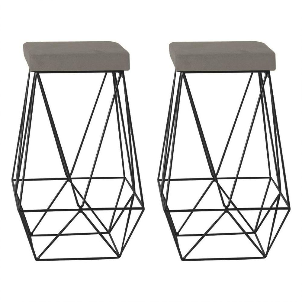 Kit com 2 Banquetas Decorativas Kathy Base Preta e Veludo Cinza Gran Belo