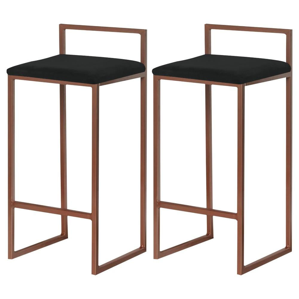 Kit 2 Banqueta Decorativa Selena Base Bronze Veludo Preto - Gran Belo