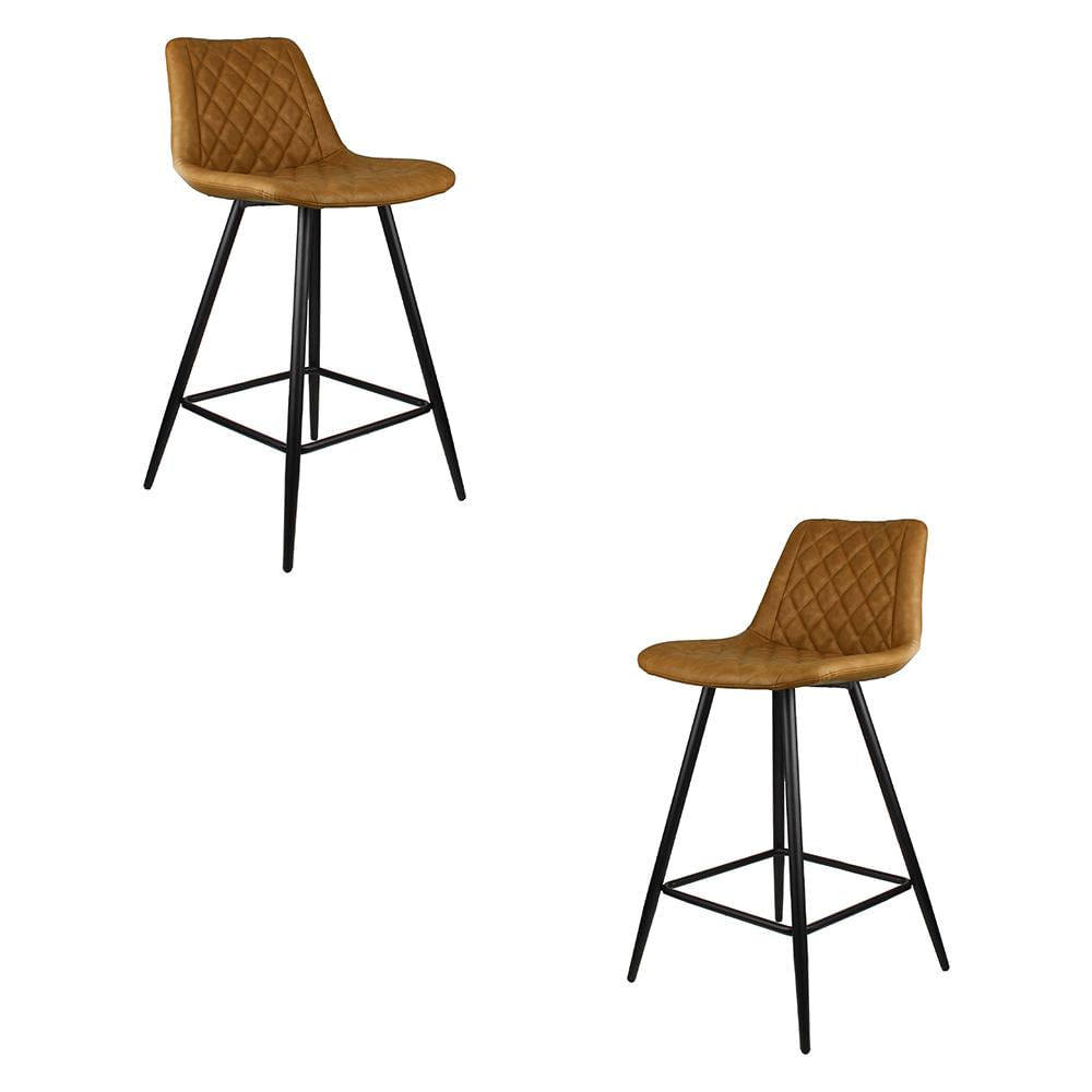 Kit 2 Banquetas Decorativas Magé PU Matelassê c/Apoio para os Pés Base em Aço Marrom G56 - Gran Belo