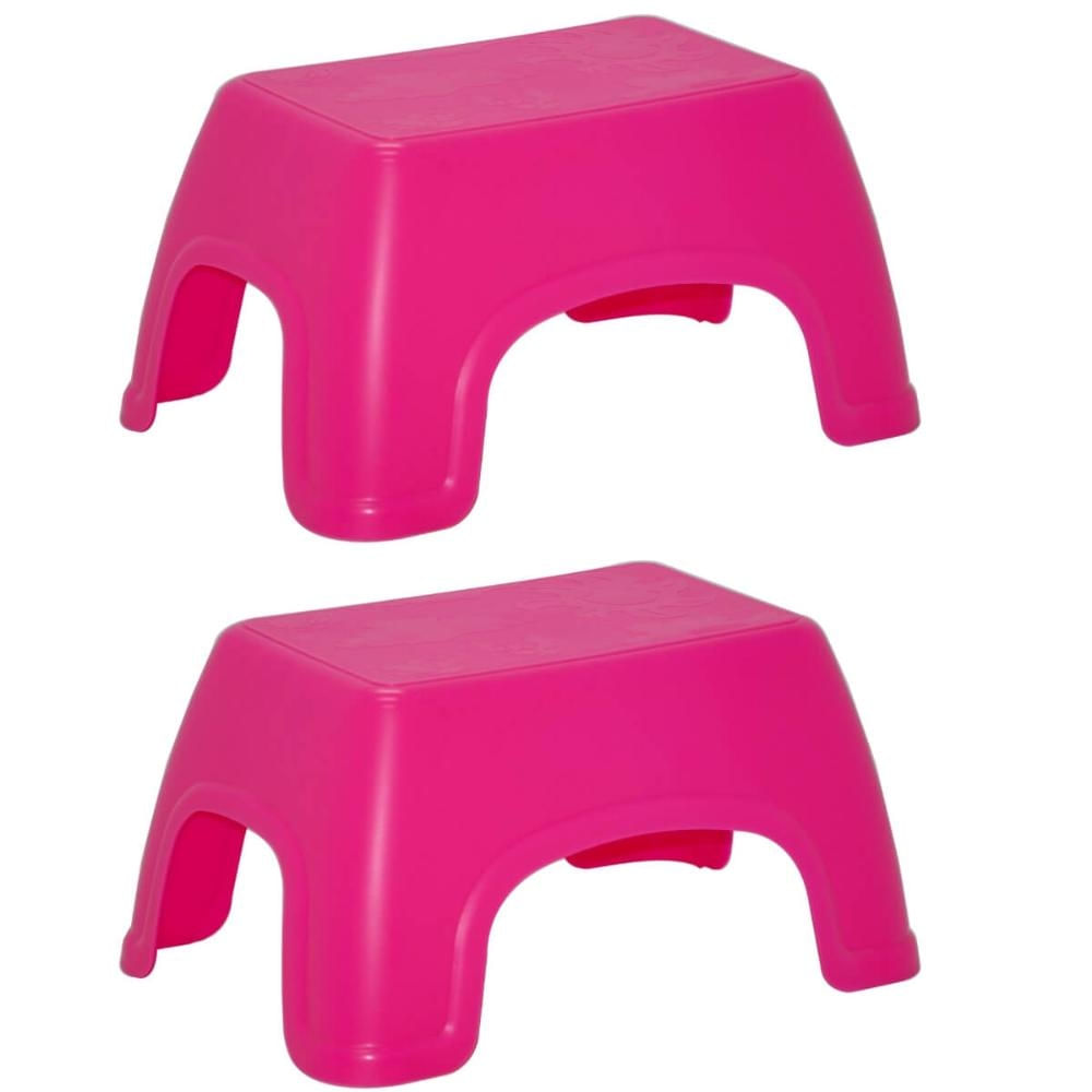 Kit 2 Banquinhos Infantis Decorados Plástico Rosa Tramontina Brinquedoteca Banco Multiuso