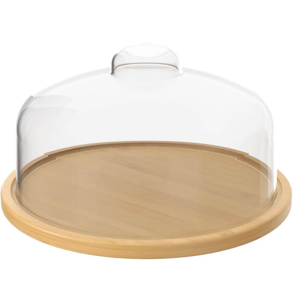 Kit Com 2 Porta Bolo De Bambu Com Tampa Plástica 26,5x21,5cm Prato Para Bolo Boleira Pedestal E Cúpula Coza Brisa