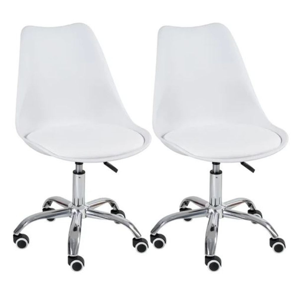 Kit 2 Cadeira Leda Giratória com Almofada e Rodízios Branco