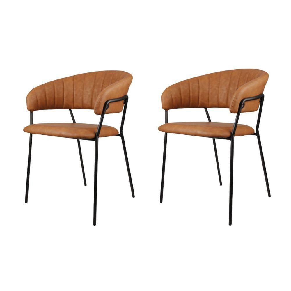 Kit 2 Cadeiras Com Braços Mara Rivatti Estofada Em Poliuretano (pu) Marrom Base Em Aço Pintada A Pó