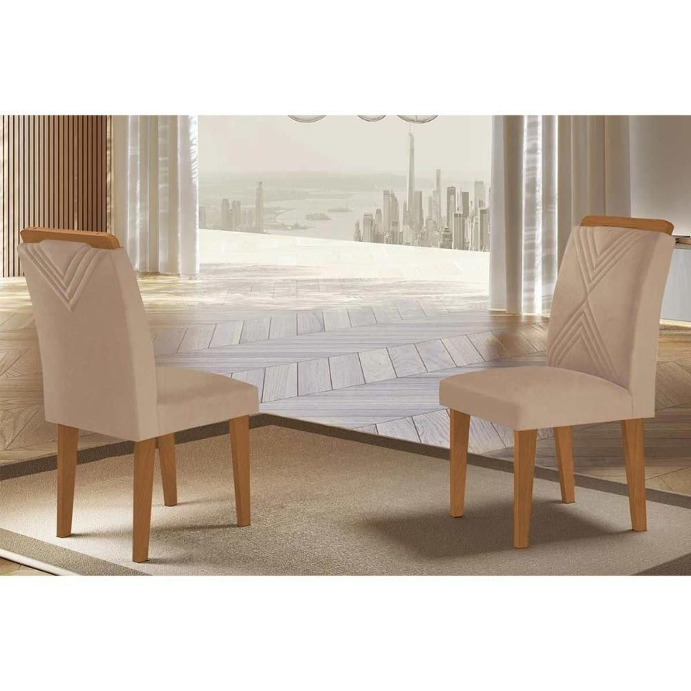 Kit 2 Cadeiras De Cozinha Amsterdã 2 Un Madeira Capuccino Linho Bege Turim Rufato