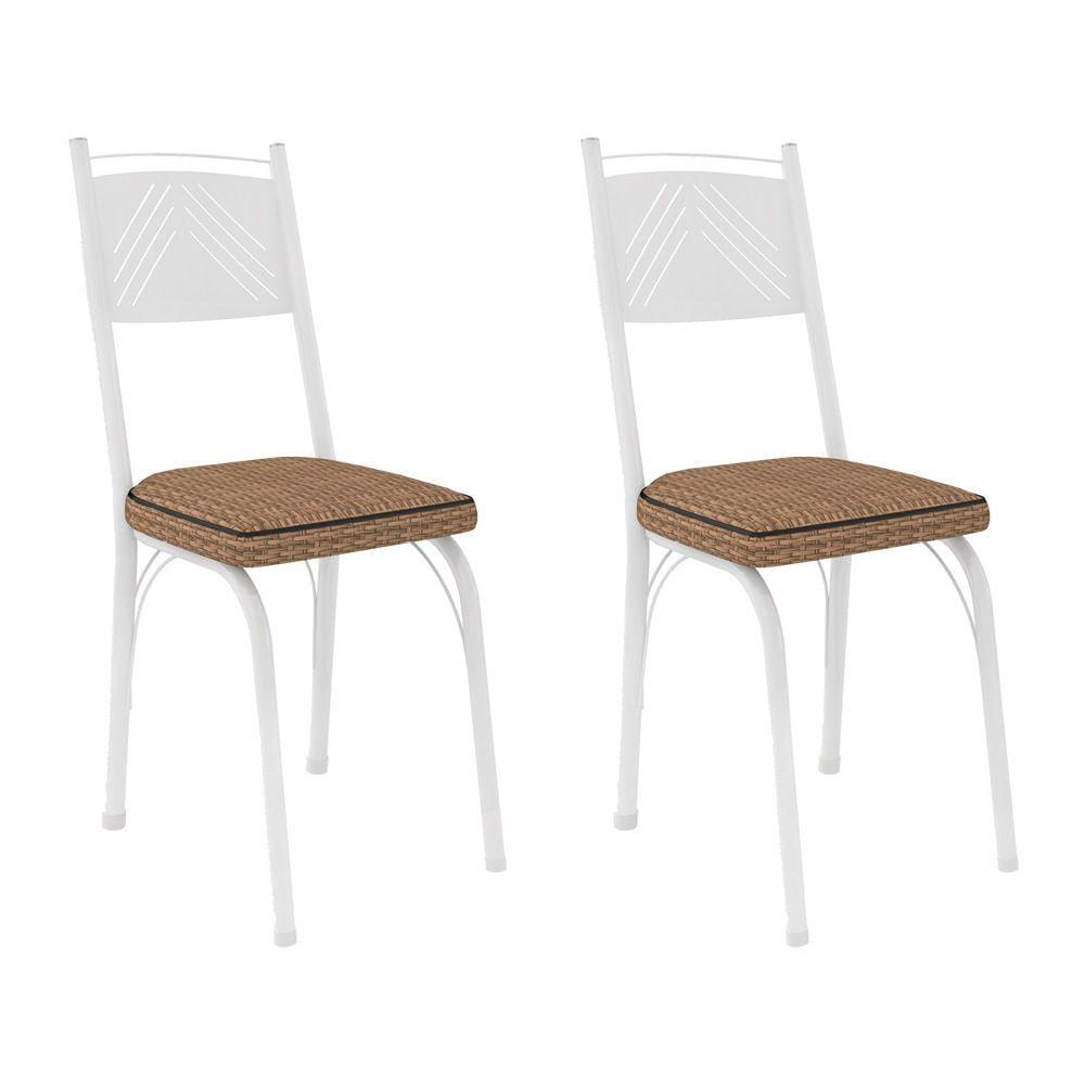 Kit 2 Cadeiras De Cozinha Virginia Estampado Rattan Bege Pés De Ferro Branco