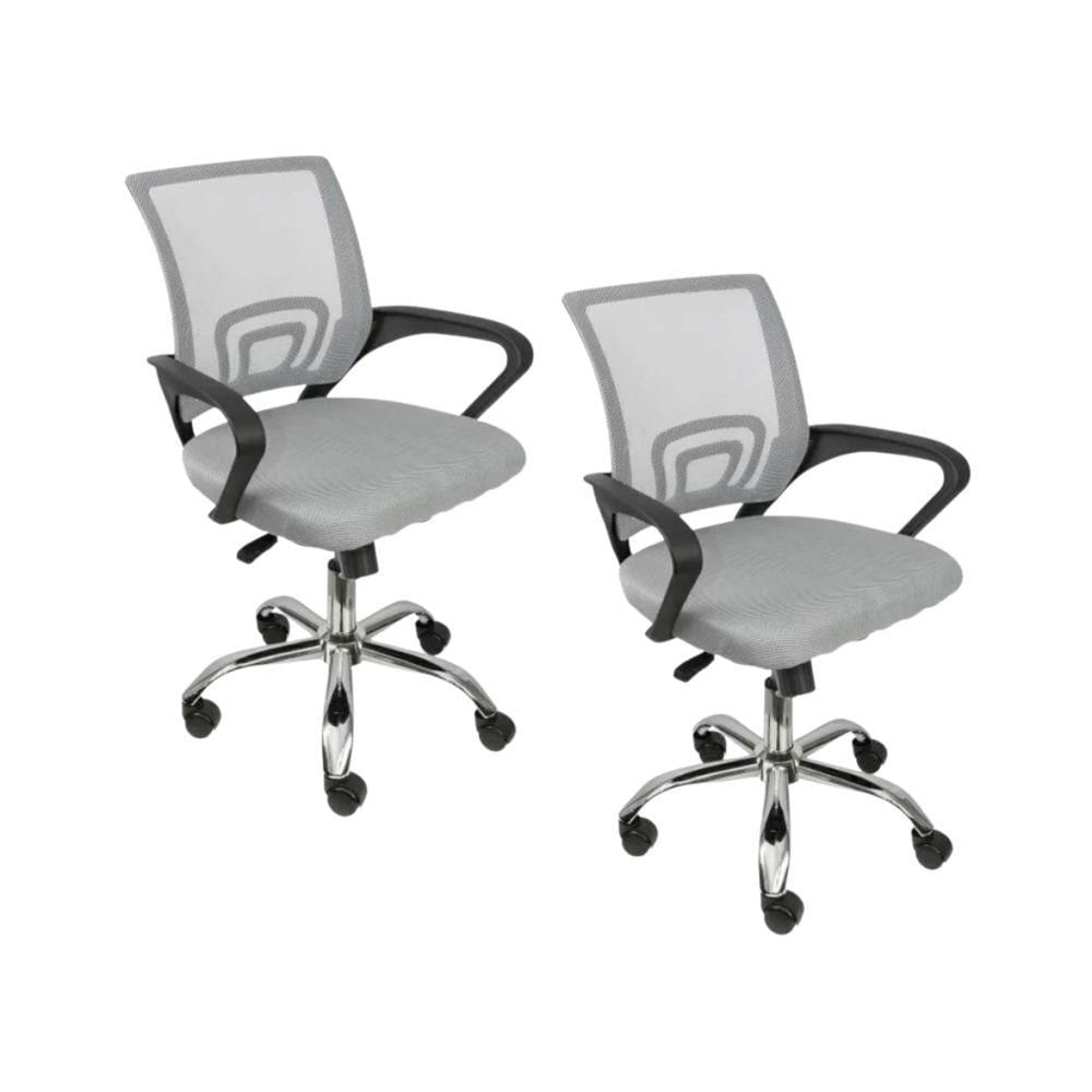 Kit 2 Cadeiras De Escritório Oficial Begonia Tela Mesh Ergonômica Cinza
