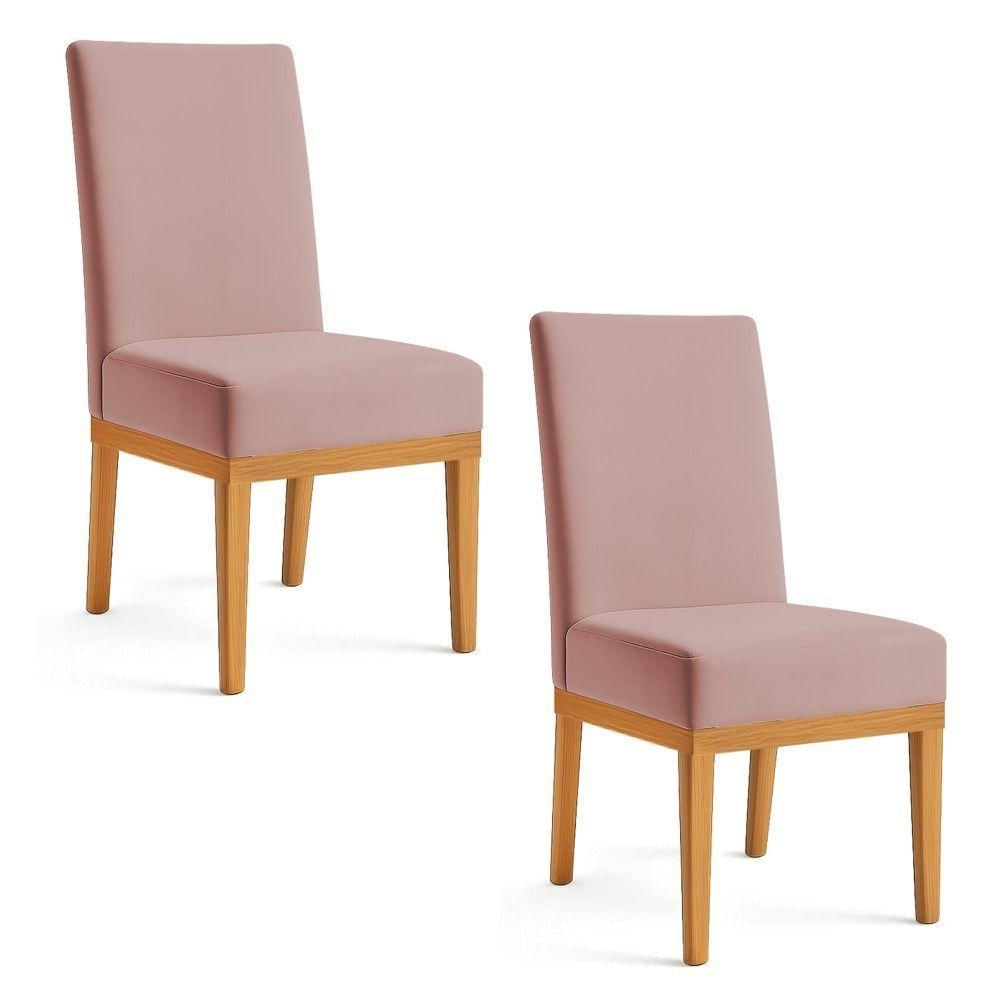Kit 2 Cadeiras De Jantar Brisa Veludo Base De Madeira - Pallazio Cor Rosê