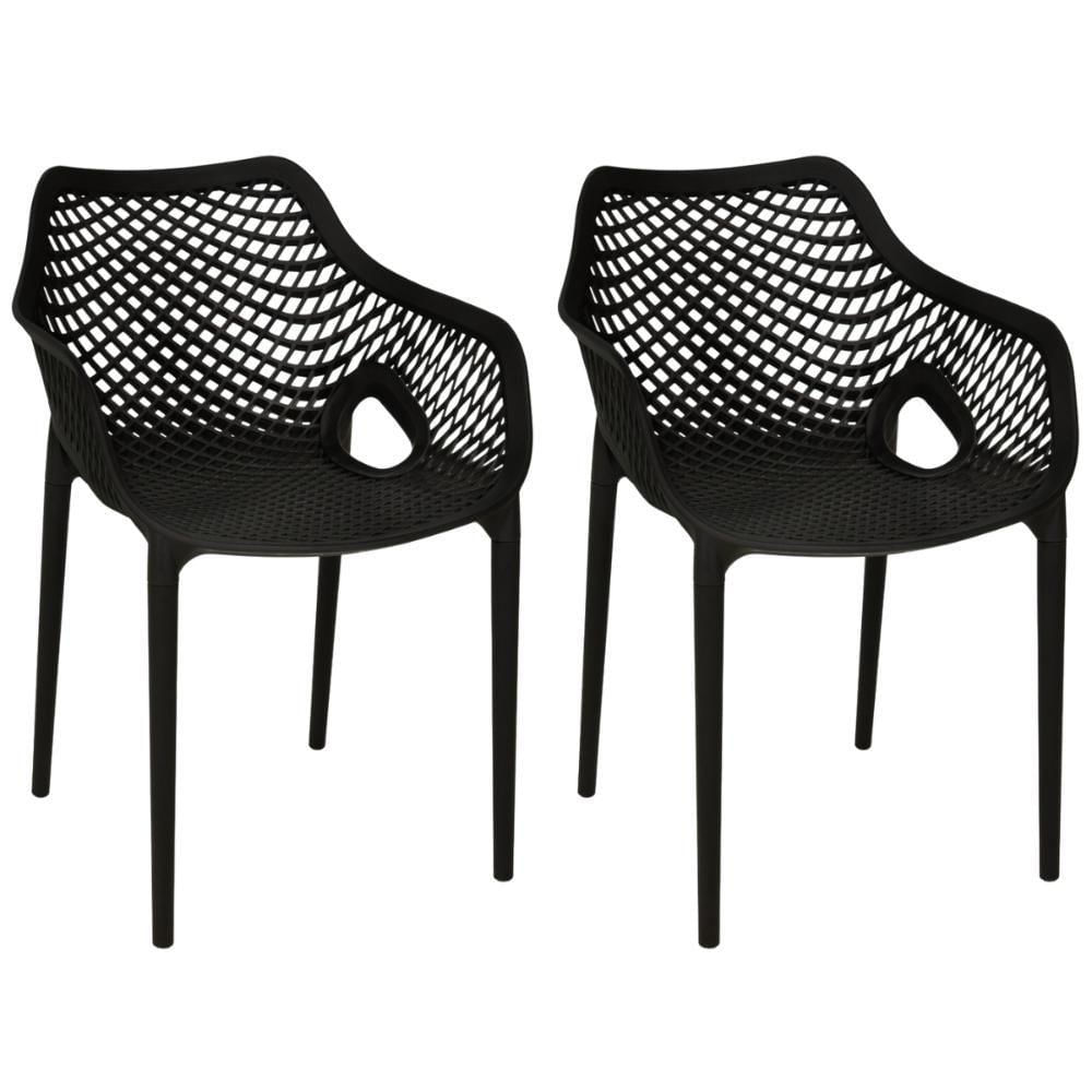 Kit 2 Cadeiras De Jantar Design Suits Com Braços Empilhável Em Polipropileno - Preto