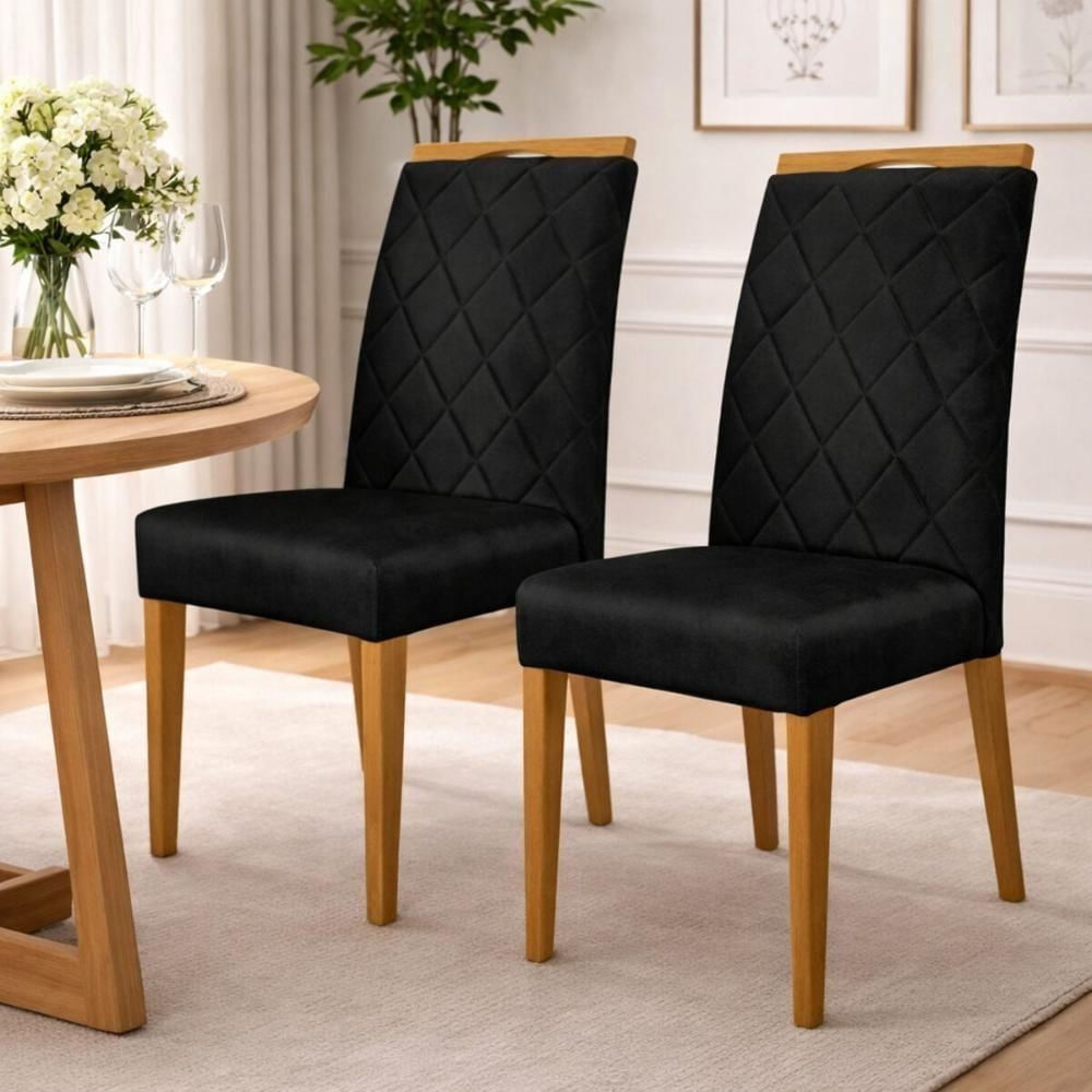 Deixe sua sala de jantar ainda mais elegante e acolhedora com o Kit 2 Cadeiras de Jantar Estofadas Madeira Maciça Multimóveis CR15016, criado para transformar cada refeição em um momento especial. Com design sofisticado e acabamento impecável, as cadeiras unem conforto e resistência na medida certa, valorizando o ambiente e proporcionando uma experiência agradável para você, sua família e seus convidados. Diferenciais: - Estrutura em madeira maciça de eucalipto: garante alta durabilidade, firmeza e estabilidade, oferecendo mais no uso diário. - Acabamento em verniz: protege a madeira e realça sua beleza natural, aumentando a vida útil do produto. - Suporta até 140kg por cadeira: estrutura robusta que transmite confiança e resistência. - Revestimento em tecido suede veludo: material mais resistente, com toque macio e aconchegante, proporcionando mais conforto e sofisticação. - Costura matelassê na parte frontal: detalhe elegante que agrega charme e requinte à decoração. - Espuma D23: oferece conforto equilibrado e boa sustentação, mantendo o formato do assento por mais tempo. - O puxador superior facilita o manuseio no dia a dia, tornando-a prática para limpar e mover.