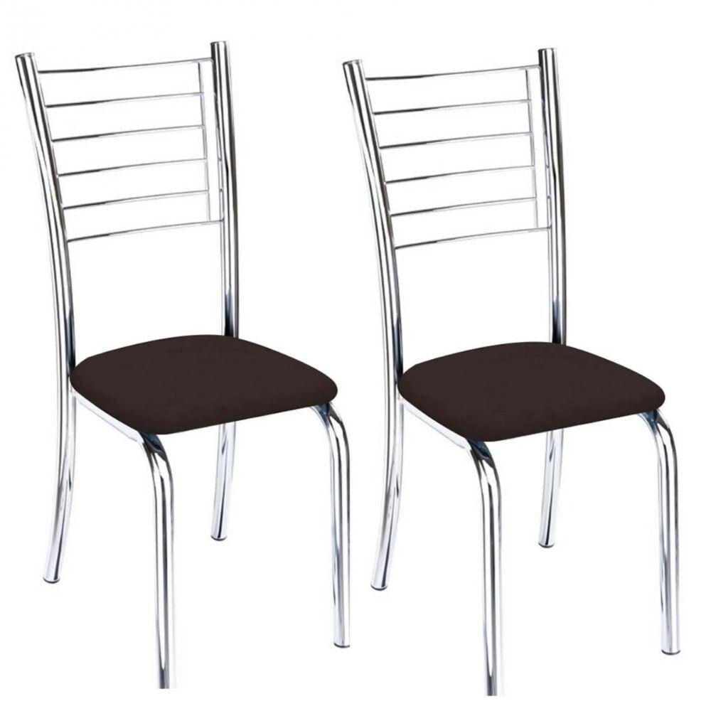 Kit 2 Cadeiras De Jantar Lara Cromada Para Cozinha Assento Corino Marrom - Aurora Line