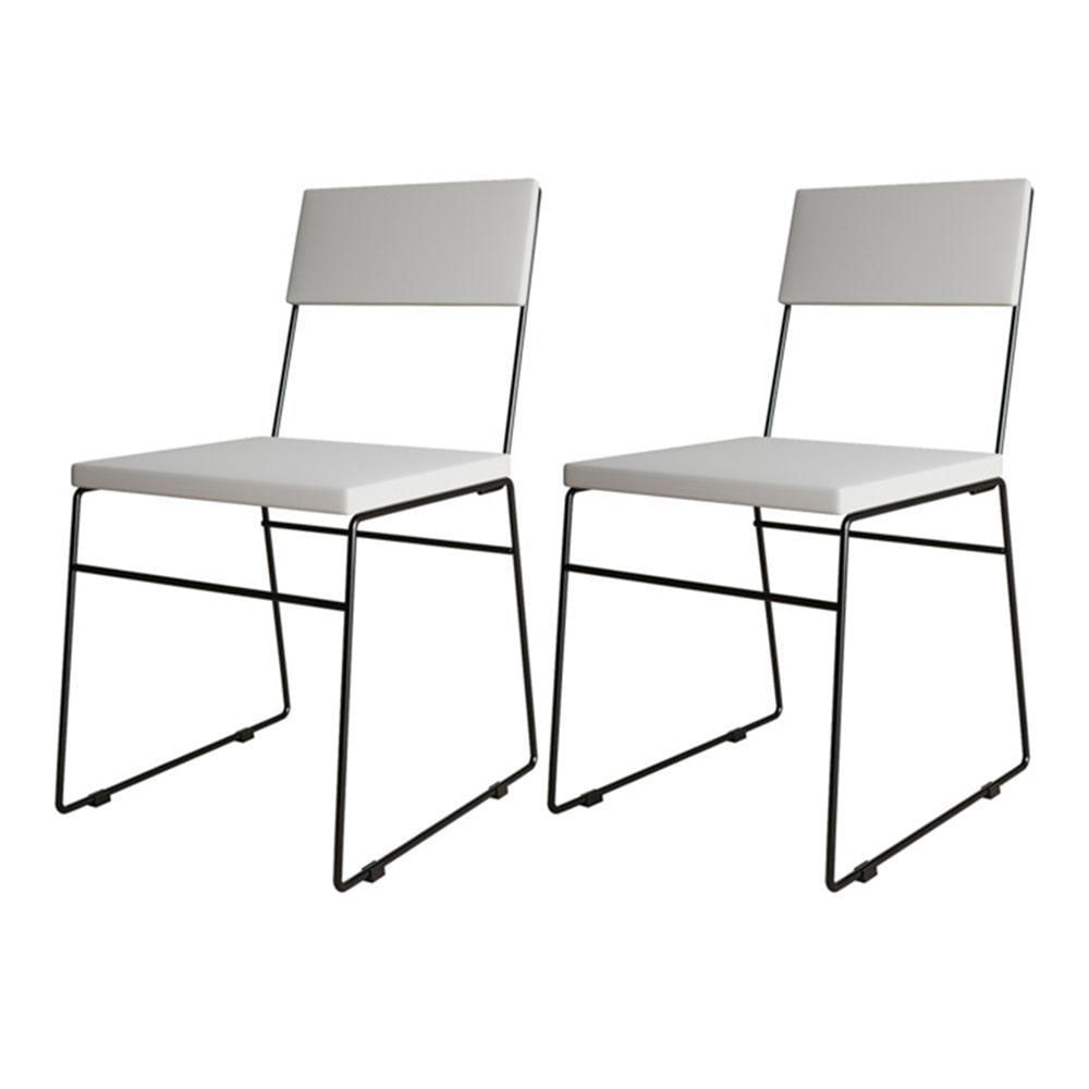 Kit 2 Cadeiras De Jantar Málaga Corino Base Preto Para Mesa Sala Cozinha E Decoração - Preto-branco