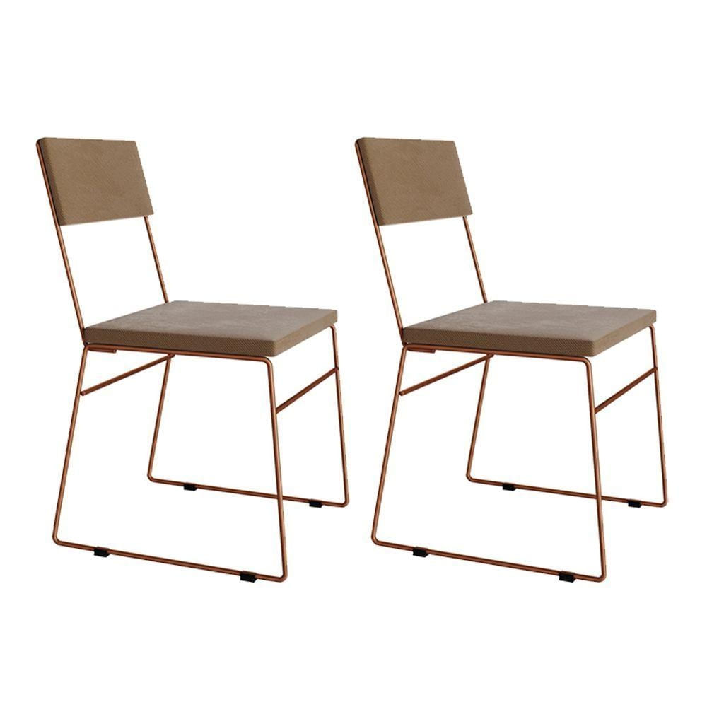 Kit 2 Cadeiras De Jantar Málaga Veludo Base Cobre Para Mesa Sala Cozinha E Decoração - Cobre-marrom