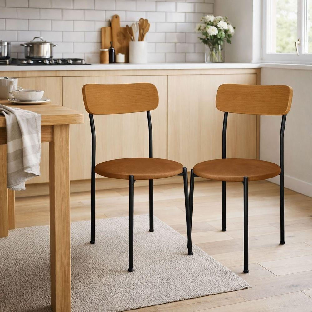 Kit 2 Cadeiras De Jantar Renata Encosto Verniz E Assento Camel Ferro Preto - Pallazio
