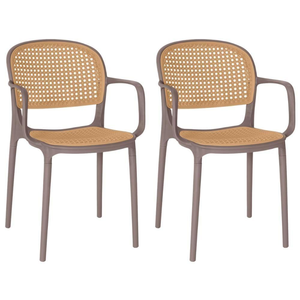 Kit 2 Cadeiras De Jantar Roma Prática Com Braços Para Sala E Cozinha - Marrom Claro