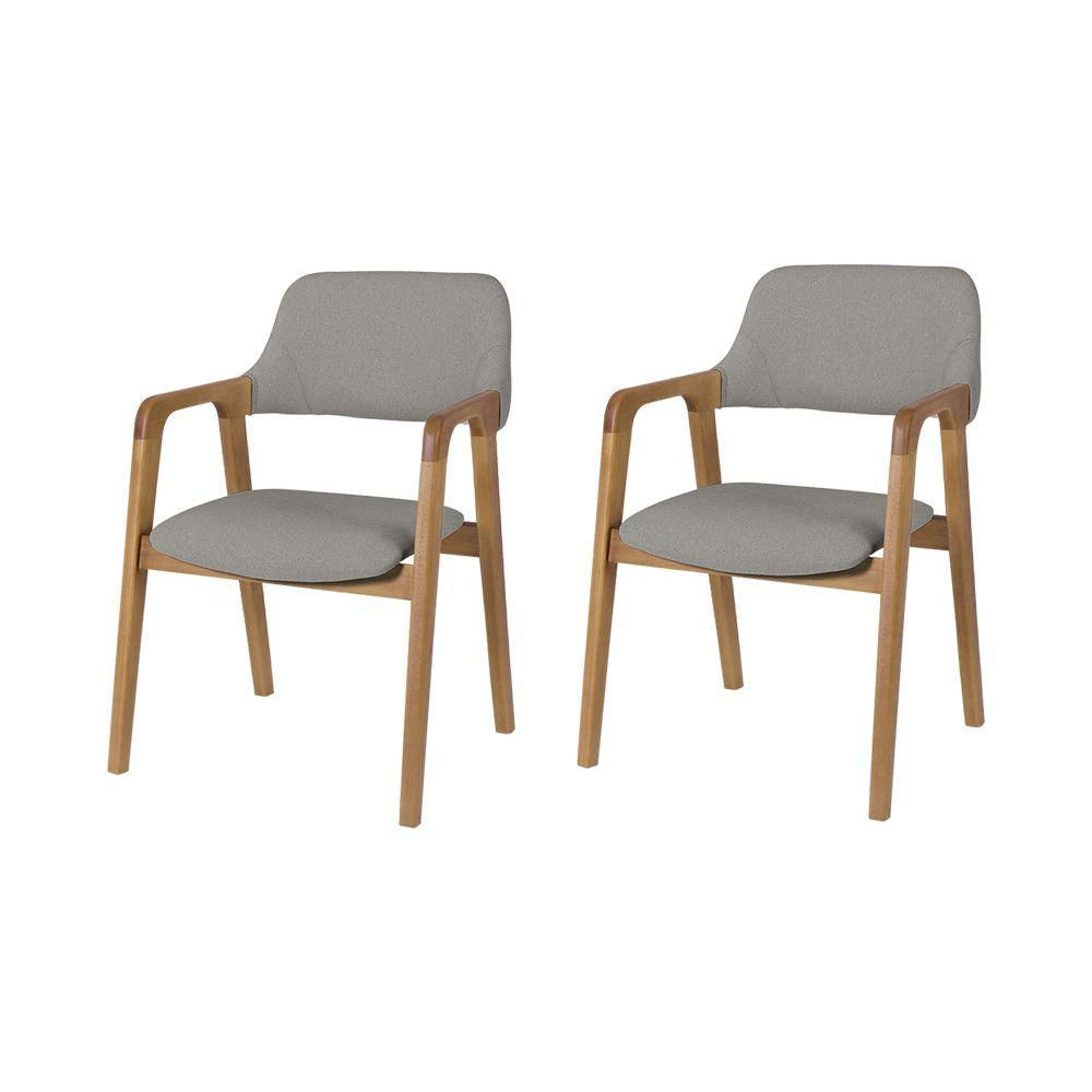 Kit 2 Cadeiras De Jantar Ruth Estrutura Em Madeira Maciça Estilo Retrô Linho Cinza
