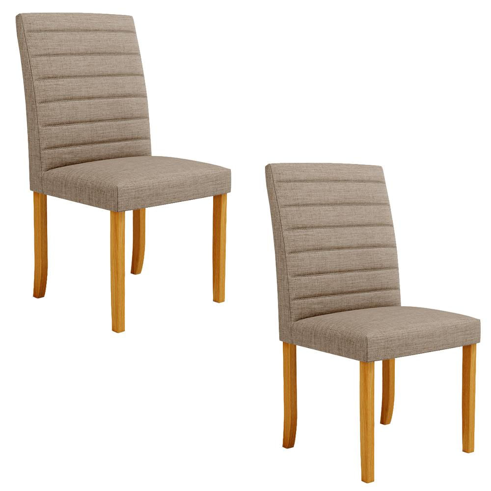 Kit 2 Cadeiras de Sala de Jantar Estofadas Veiga Madeira Maciça Linho Bege Escuro G78 - Gran Belo