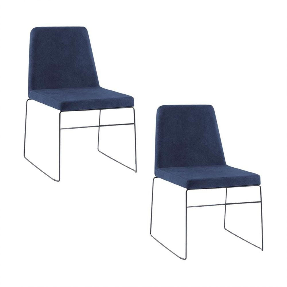 Kit 2 Cadeiras Decorativa Sala De Jantar Anne Linho Azul Marinho - Gran Belo