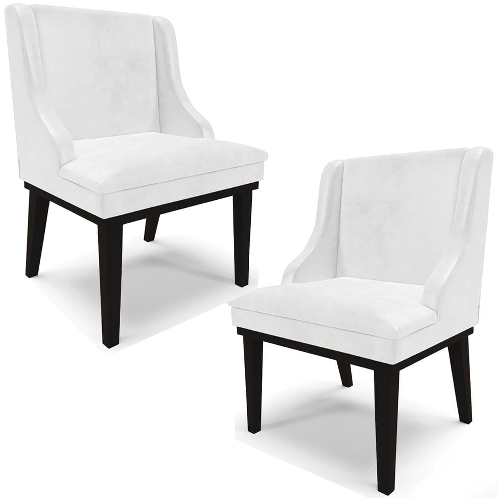 Kit 2 Cadeiras Decorativas Sala de Jantar Base Fixa de Madeira Firenze PU Branco Brilho/Preto G19 - Gran Belo