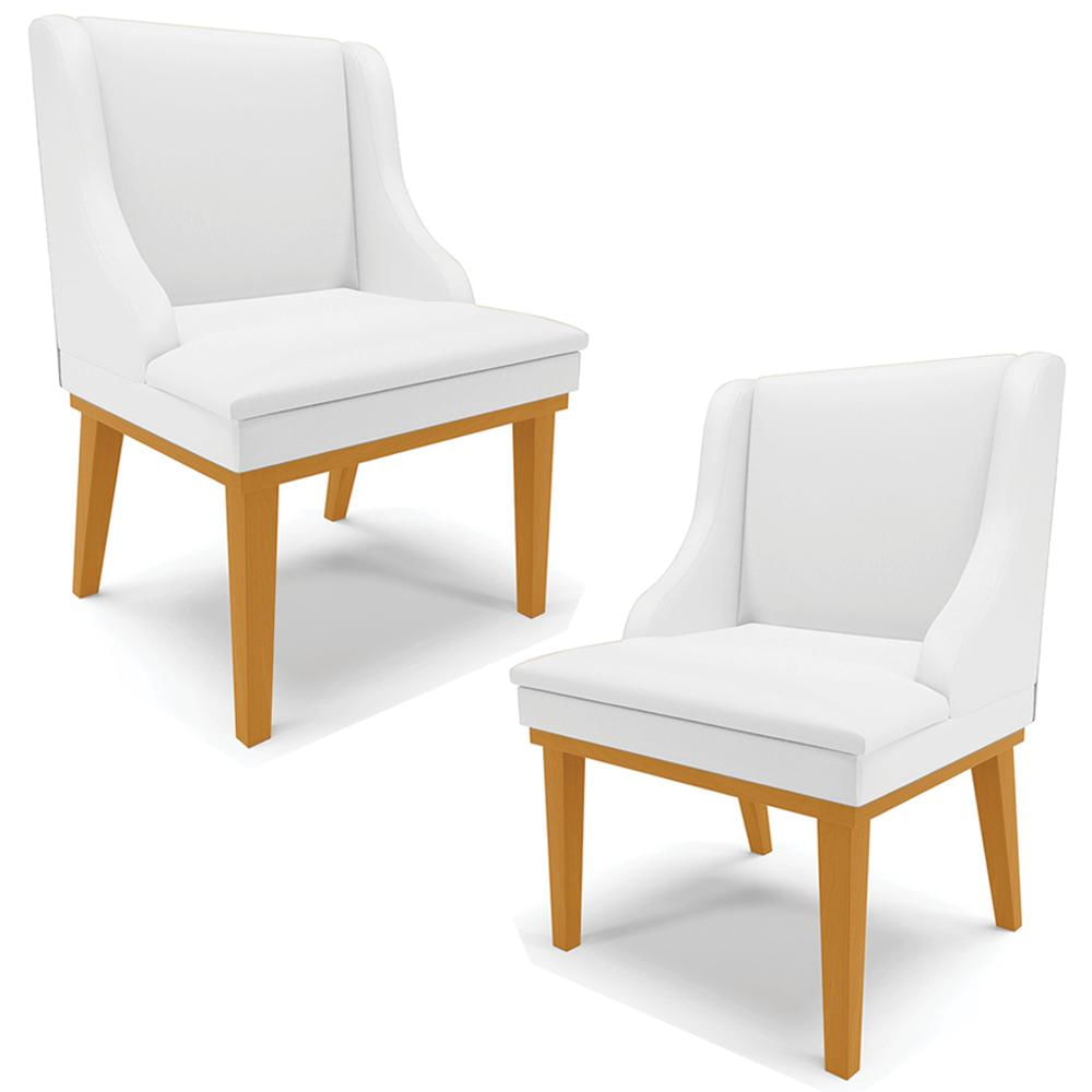 Kit 2 Cadeiras Decorativas Sala de Jantar Base Fixa de Madeira Firenze PU Branco Fosco/Castanho G19 - Gran Belo