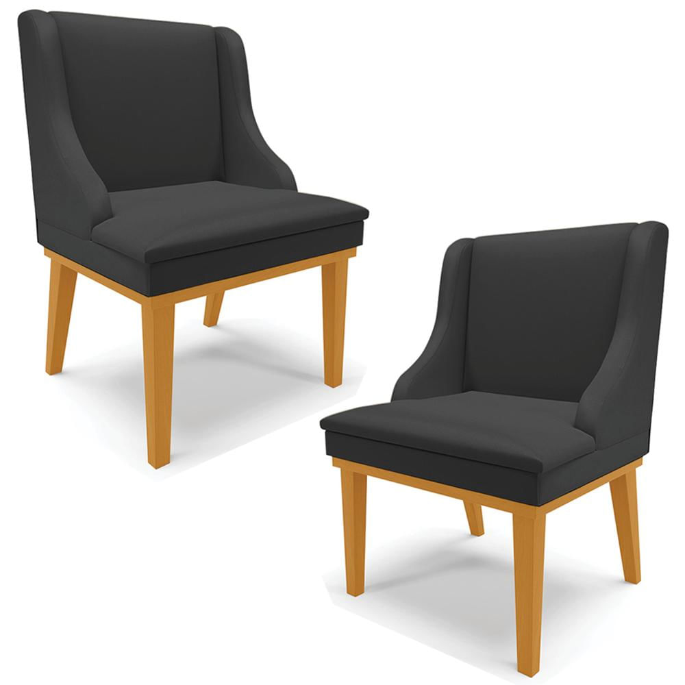 Kit 2 Cadeiras Decorativas Sala de Jantar Base Fixa de Madeira Firenze PU Preto Fosco/Castanho G19 - Gran Belo