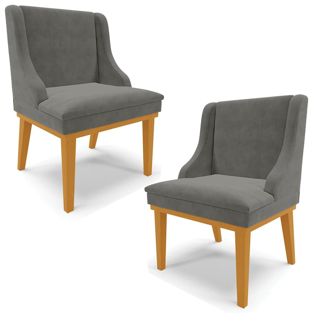 Kit 2 Cadeiras Decorativas Sala de Jantar Base Fixa de Madeira Firenze Suede Grafite/Castanho G19 - Gran Belo