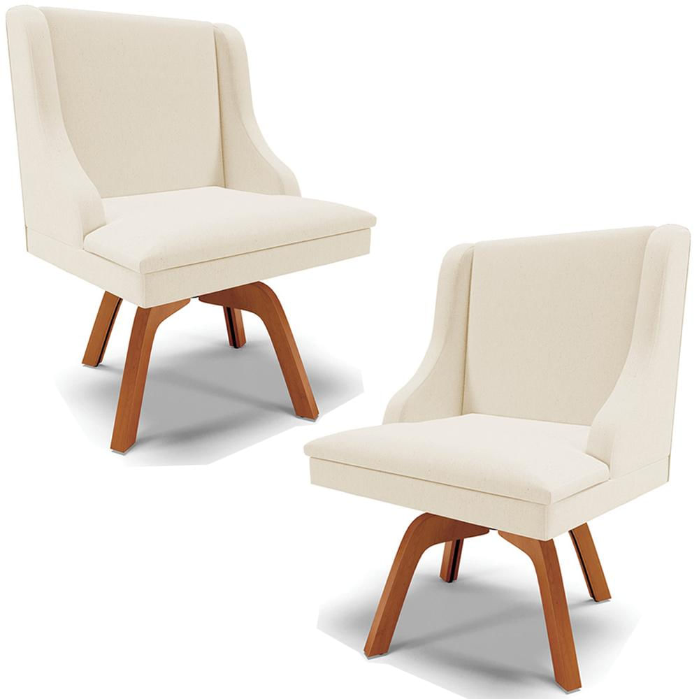 Kit 2 Cadeiras Decorativas Sala de Jantar Base Giratória de Madeira Firenze Linho Bege/Natural G19 - Gran Belo