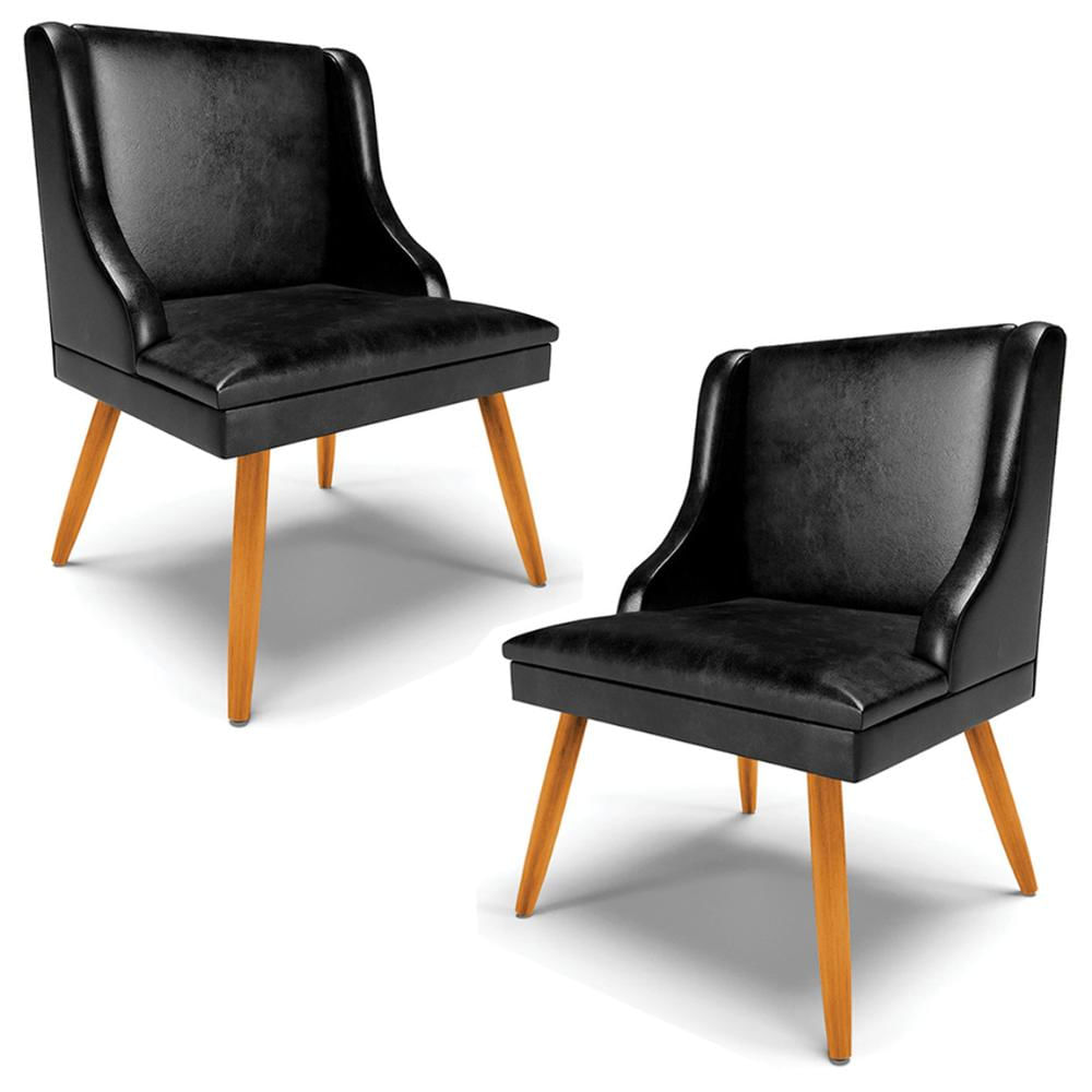Kit 2 Cadeiras Decorativas Sala de Jantar Pés Palito de Madeira Firenze PU Preto Brilho/Natural G19 - Gran Belo