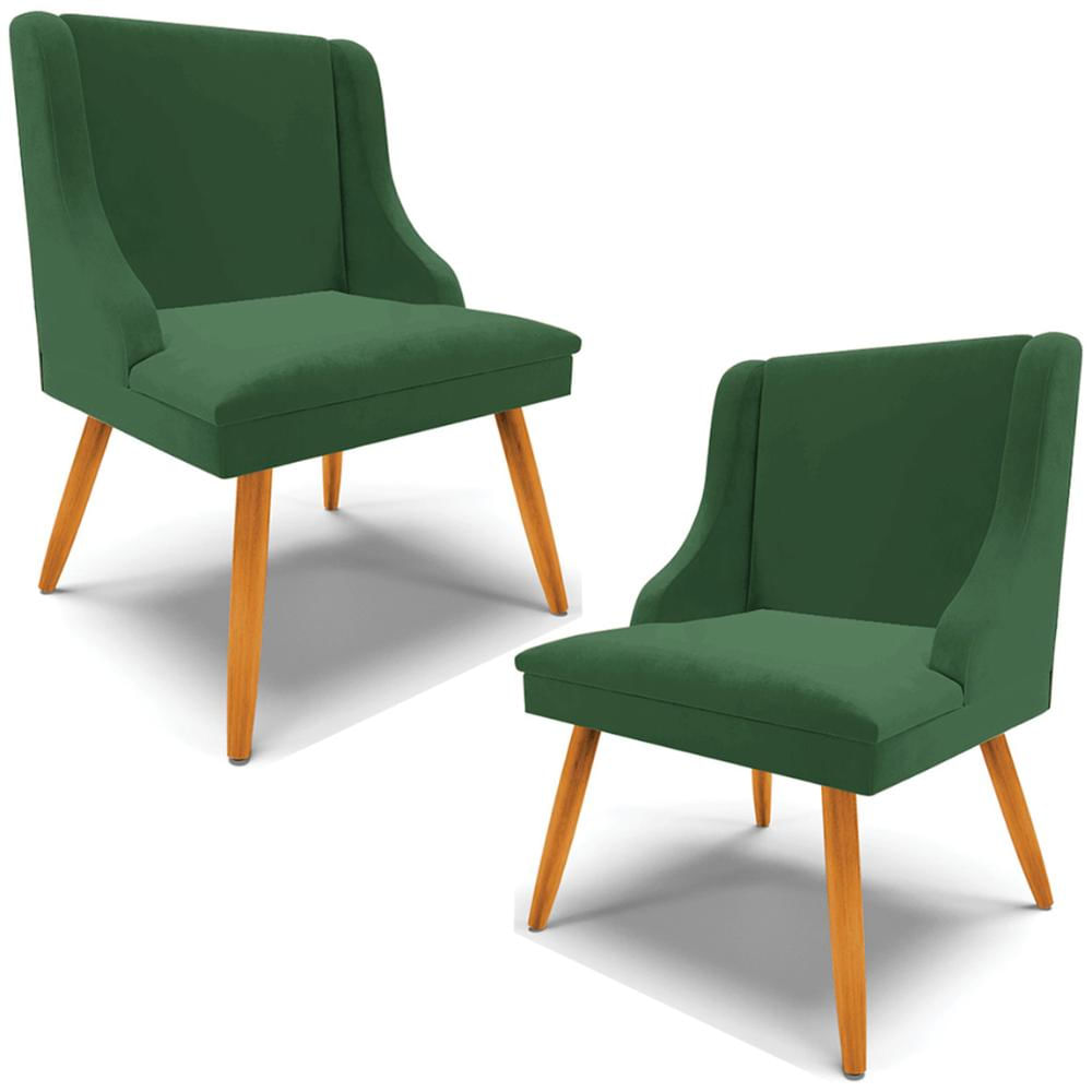 Kit 2 Cadeiras Decorativas Sala de Jantar Pés Palito de Madeira Firenze Veludo Verde/Natural G19 - Gran Belo