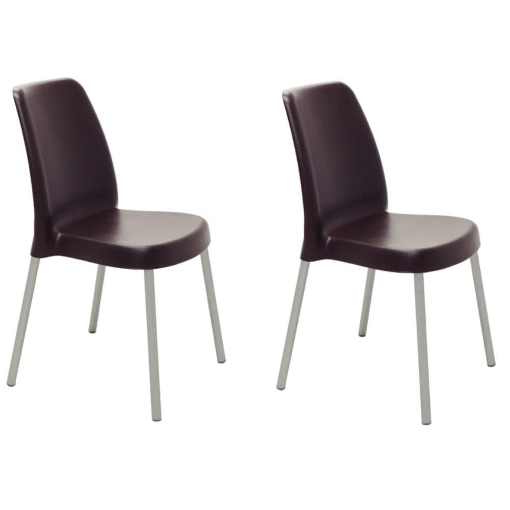 Kit 2 Cadeiras Vanda Em Polipropileno Marrom Com Pernas De Alumínio Tramontina 92053/919
