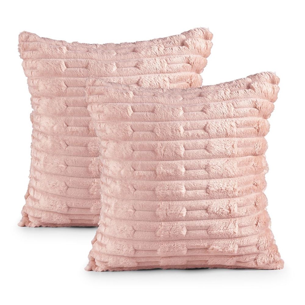 Kit 2 Capas de Almofada Polar Manta Ultrasoft com Ziper Decorativa Sofá Sala Quarto Rosa Blush